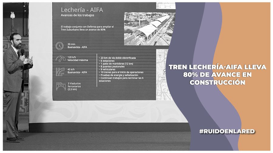 - Lechería-AIFA: presenta un avance de 80 por ciento en los trabajos realizados; el recorrido de Buenavista al AIFA se podrá hacer en 39 minutos con trenes que tendrán una velocidad de 120 kilómetros por hora. Comprende 23 km de vía doble electrificada, seis estaciones, ocho puentes peatonales y nueve vehiculares e iniciará operaciones con 10 trenes.