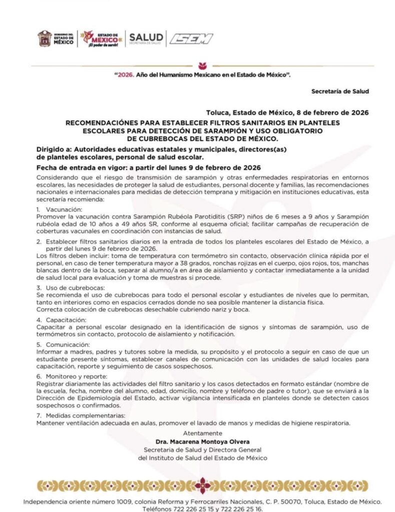 De acuerdo con un documento oficial, la dependencia emitió recomendaciones obligatorias para establecer filtros sanitarios en todos los planteles escolares, tanto públicos como privados, las cuales entraron en vigor a partir de este lunes 9 de febrero.