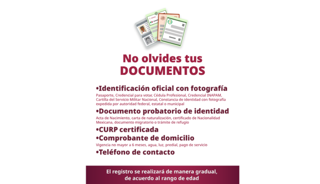 Informó que en la primera etapa se registrarán a casi 100 millones de mexicanas y mexicanos, por ello se ha determinado iniciar con los adultos mayores de 85 años o más, del 13 al 30 de abril. Además, se permitirá que los acompañantes o cuidadores de los adultos mayores también se registren.