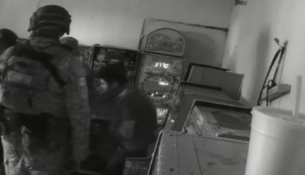Durante la agresión, los militares intentaron forzar al joven a admitir que trabaja para el crimen organizado como “halcón”. La víctima insiste en que no se dedica a actividades ilícitas, lo que provoca que uno de los elementos incremente la violencia, hasta azotarlo contra las máquinas tragamonedas.