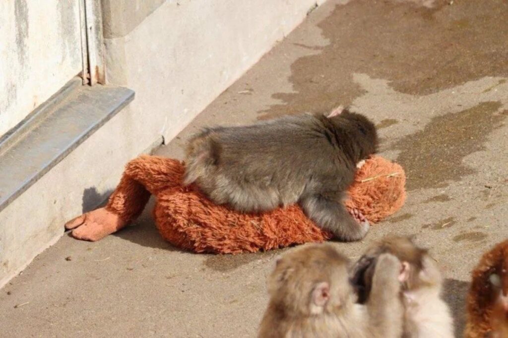 Ante la falta de contacto materno —fundamental en el desarrollo de los macacos durante sus primeros meses de vida— los cuidadores le entregaron un peluche —un mono de peluche conocido como “Lupe”— para ayudarle a reducir el estrés y la ansiedad.